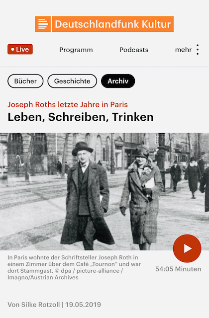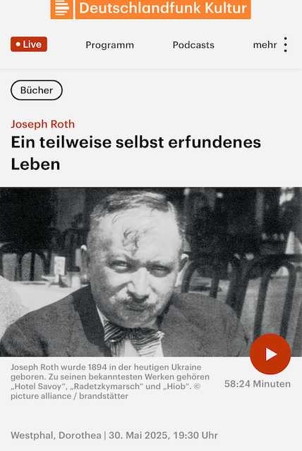 „Ein teilweise selbst erfundenes Leben“ – so überschreibt Dorothea Westphal den erst am 30. Mai 2025 auf Deutschlandfunk Kultur erschienenen Beitrag über Joseph Roth.