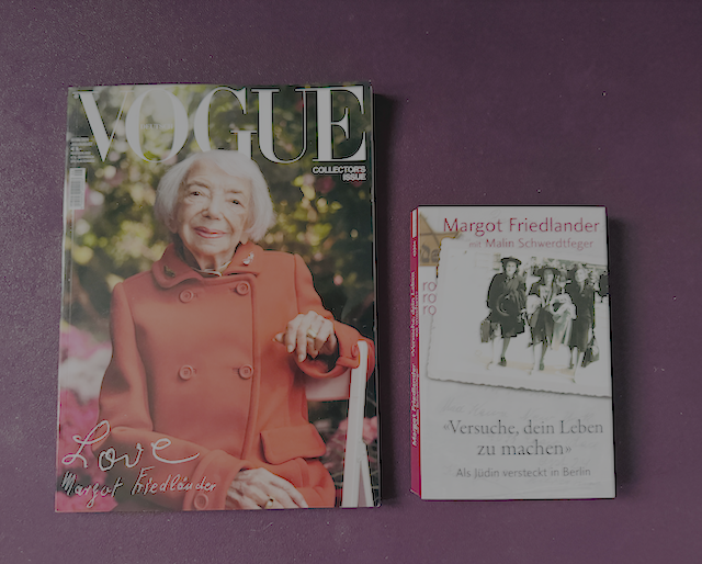 Letztlich schreibt sie ihre besondere Geschichte doch in einigen Nächten auf, nach der langen Zeit in New York schreibt und denkt sie auf Englisch. Wenige Jahre später – 2003 – kommt Margot Friedländer erstmals auf Einladung des Senats zurück nach Berlin, erkennt diese Stadt natürlich kaum mehr wieder. Das Haus in der Fasanenstraße, ihr letztes Versteck, steht nicht mehr, aber das Gebäude in der Skalitzer Straße 32 in Kreuzberg, wenn ich daran auf dem Weg nach Kreuzberg vorbeifahre, muss ich immer wieder an Margot Friedländers Geschichte denken. Tatsächlich wird sie im Februar 2010 im Alter von 89 Jahren nach Berlin zurückkehren, dieses Mal für immer. Ihre Motivation: Sie möchte ihre Biografie mit jungen Menschen teilen, auf diese persönliche Art zum Bewahren der Erinnerung beitragen, um so eine mögliche Wiederholung der Geschichte aufzuhalten. Bis zu dreimal in der Woche erzählt sie in Schulen und anderen Einrichtungen ihre Erfahrungen, diskutiert, stellt sich den Fragen der Kinder und Jugendlichen. Ihr wurden zahlreiche Ehrungen zuteil – das Bundesverdienstkreuz erster Klasse, die Ehrendoktorwürde am Fachbereich Geschichts- und Kulturwissenschaften der FU Berlin, um nur einige zu nennen -, aber es ging ihr immer um die Sache an sich und die nächsten Generationen, nie um die Preise. Eine energiegeladene und mutige Frau mit unermüdlichen Engagement und ja, es mag kitschig klingen, eben auch mit einem großen Herzen.